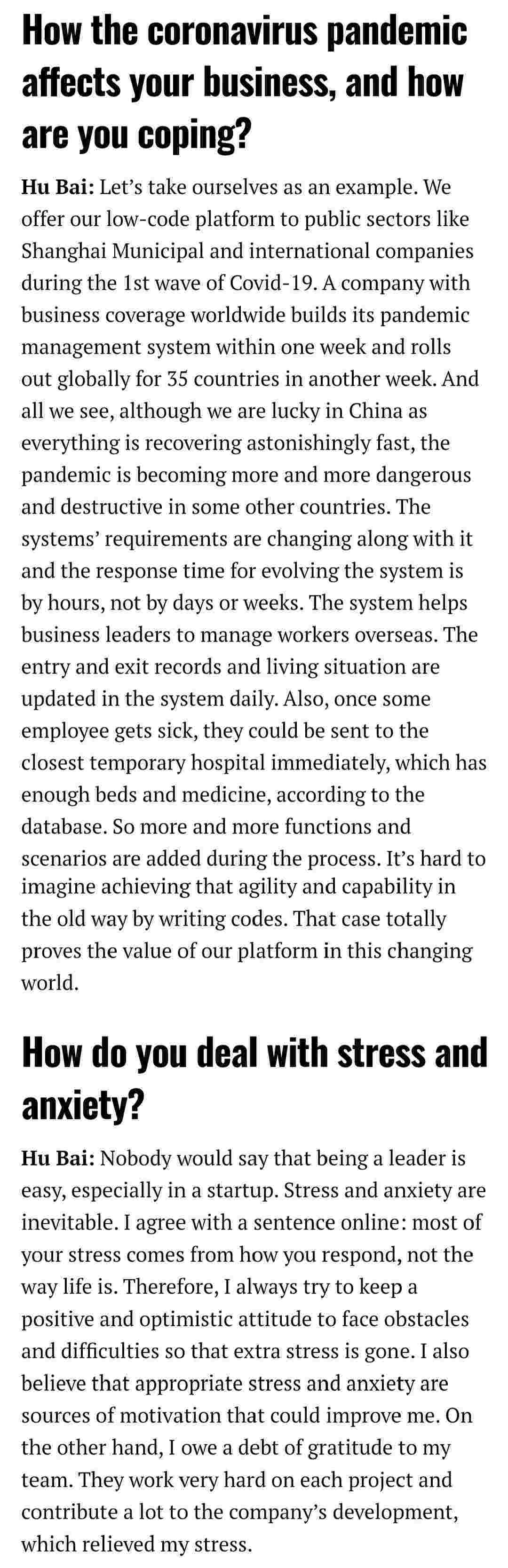 2021年年初,,,,,,,,,,,,爱湃斯科技CEO胡柏受邀接受法媒Startup.info的专访,,,,,,,,与Startup info的读者分享了自己的创业经历、、、、、、、、、、、、以及低代码平台NO钱包的创新之处。。。。。。。。。。。